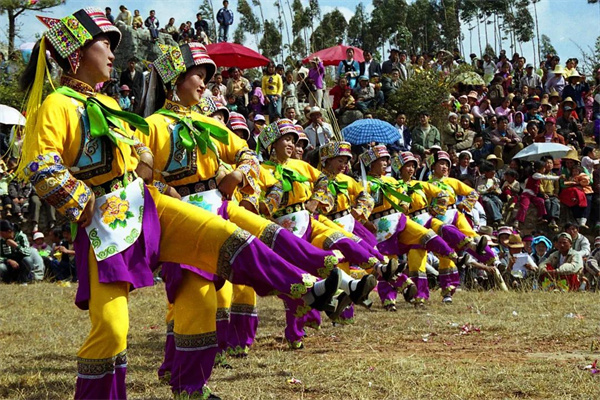彝族人不僅能歌善舞,而且熱情好客,彝族"大三弦"富有強烈的感染力。每逢"火把節",人們燃起篝火、點上火把,圍著篝火彈起"大三弦"載歌載舞,縱情高歌彝族舞蹈不僅歷史悠久,而且種類繁多,每個支系都有不同的舞蹈,甚至同一支系,因居住地不同,舞蹈也就不一樣。