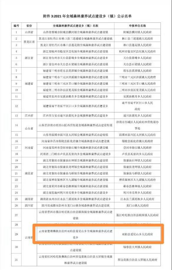 雙柏縣愛(ài)尼山鄉(xiāng)入選2021年全域森林康養(yǎng)試點(diǎn)建設(shè)鄉(xiāng)