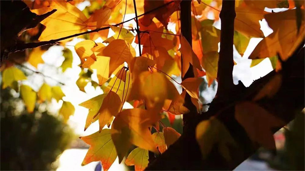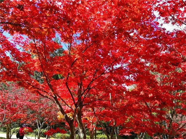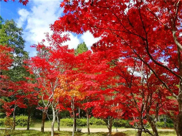 在冬日和煦的陽(yáng)光下,紅葉色彩更加濃艷,微風(fēng)拂過(guò)的瞬間仿若一片燃燒的火海,美不勝收。