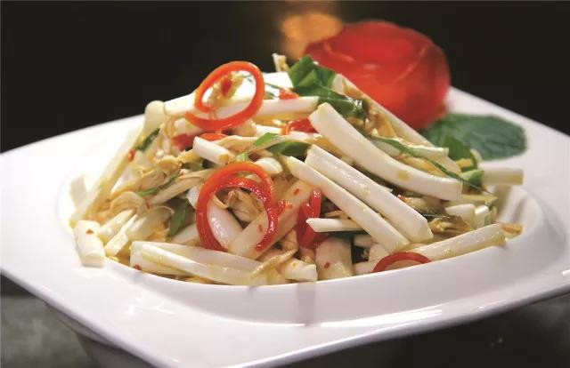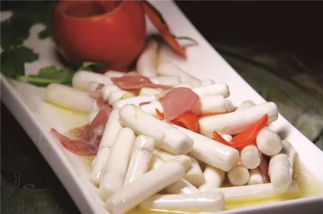 草芽宴中,象牙菜、羊奶菜炒草芽、老酸菜炒草芽、小白龍過江(草芽煮湯)、涼拌草芽、 素炒草芽、草芽炒豬肉片等是最具代表性的菜品。做象牙菜,定要選取草芽最嫩的部分,待清洗干凈后,不用折斷,把一整根草芽在高湯里灼三四十秒種即可,然后裝盤,澆上上好的湯料,象牙菜就做好了。湯料一般選取的是肉末、番茄,調料 有姜末、鹽巴、味精、雞精等,汆好后勾點兒芡就行。