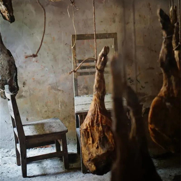順著陡峭的青石板臺階踏入這座古村,平靜祥和的氣息撲面而來。隨意走進一戶民居,一個個金燦燦的火腿懸掛在屋梁上,引得人垂涎欲滴。