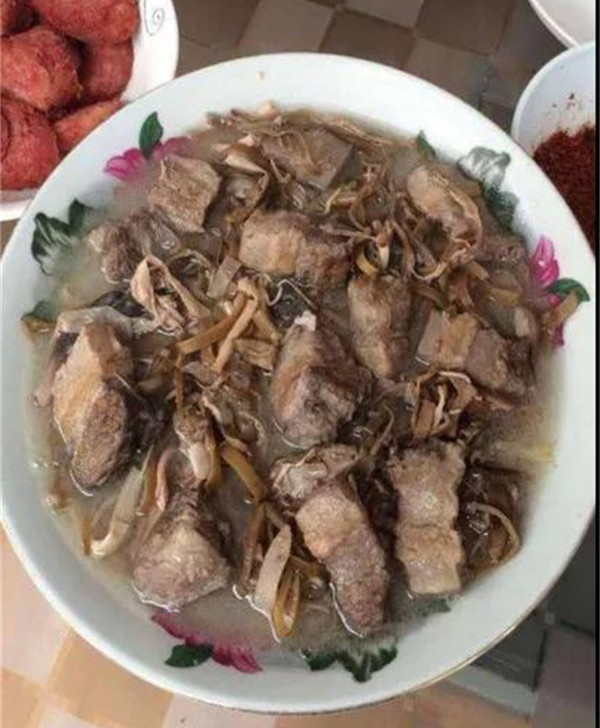 用芭蕉的清香帶出紅燒肉的美味,味道香醇不油膩,兩者配合相得益彰,讓人回味無窮。不論菜名是“芭蕉花燉紅燒肉”還是“軍民魚水情”,這道菜在滿足大家味蕾的同時,也會讓人情不自禁想起當年那些感人至深的故事。來到麻栗坡,身處青山碧水,品嘗到這道美食,才是不虛此行。