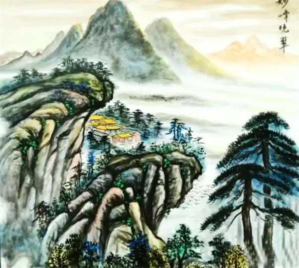 殘陽余曜古寺輝,群山滴翠倦鳥歸。