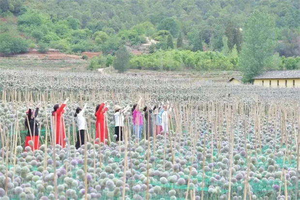 綠葉間探出頭來的小小花苞,不知最終開出來的是藍色還是粉色?帶著這樣的疑問,游人一腳便踏入了花海。