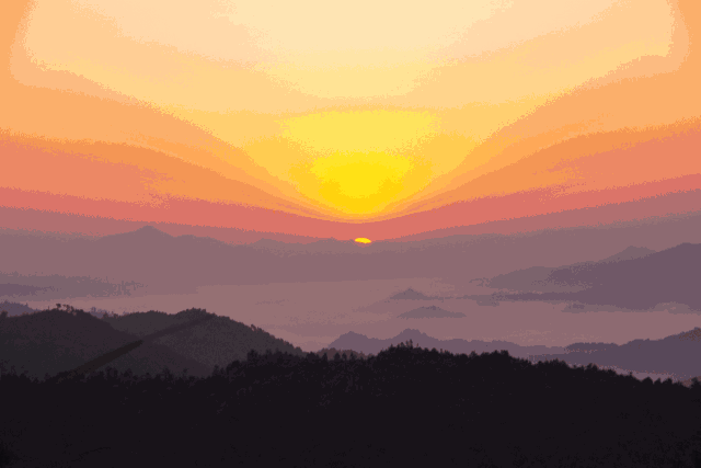翌日,起個大早,看云海繚繞,仿佛置身于仙境中,等待太陽從云海下慢慢升起,享受一個不一樣的時光。