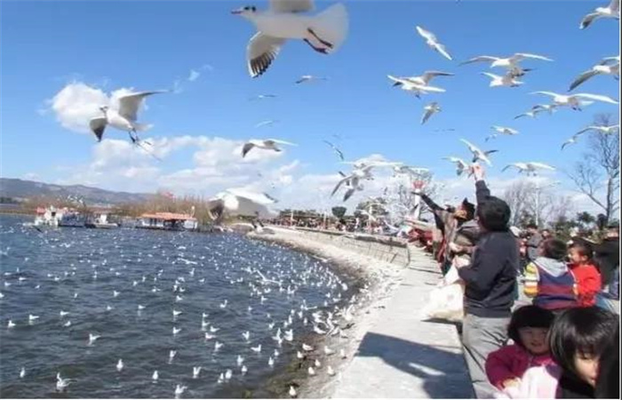 海埂大壩位于滇池的旁邊,可以看到西山下的滇池,景色很美。市民和游客都喜歡來這看海鷗,壩上全部飛來飛去的海鷗非常壯觀,大壩非常的寬,停車也很方便,許多新人都來這里拍婚紗照。