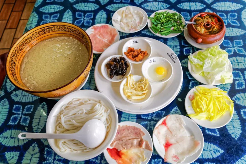 看似清淡的湯底,實則口感相當醇厚,再配上順滑的米線,和數十種配料,云南的秋是從一碗過橋米線開始的。