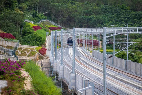 堅(jiān)持建設(shè)與節(jié)約資源、環(huán)境保護(hù)并重,像對待生命一樣對待生態(tài)環(huán)境是中老鐵路建設(shè)遵循的原則。“眼中有花,窗外有綠,這將是‘人在車中坐,車在畫中行’的景象。”