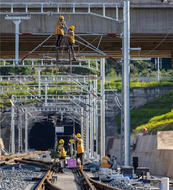 標(biāo)志著中老鐵路全線供電線路