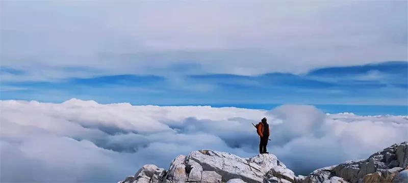 普洱山巖石陡峭,怪石林立,刀削斧劈,直聳云天。站上普洱山的最頂點(diǎn)——?dú)置表敚路鹕焓志湍艹断绿焐狭鲃?dòng)的白云。浩瀚的云海將山、石、城、林縈繞,時(shí)而如潮水般洶涌,時(shí)而如溪水般靈動(dòng),時(shí)而沒過山峰,時(shí)而悄然退散......