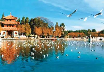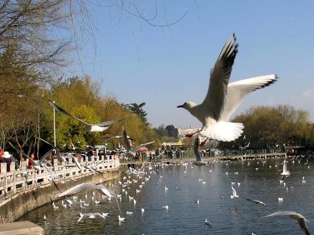 成群的海鷗就會(huì)從滇池飛來(lái)翠湖,