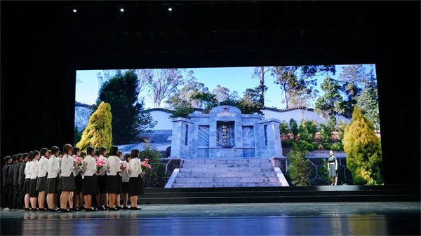 在精美的舞臺設計和演員們融情于景的生動演繹下,趙祚傳烈士的人生畫卷徐徐展現(xiàn)在觀眾眼前。當“五四”的浪潮襲來,他挺立潮頭,點燃了燎原的星星之火;他撰寫了《農(nóng)民四字經(jīng)》,成為黨組織宣傳群眾、動員群眾的革命經(jīng)書;他是中共云南省特委書記,但為了給黨組織籌活動經(jīng)費,四處奔走,賣房賣地;他三次入獄,飽受折磨,但依然堅定信念,和反動派進行不屈不撓的斗爭。