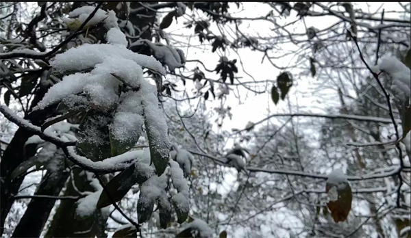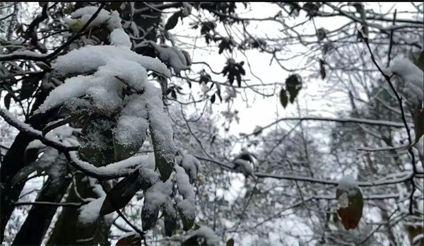 跟隨手機的鏡頭,美好的景致隨處可見。雪花猶如舞動的精靈,粉飾著這玉砌冰雕的童話世界。彩林尚在,冬雪降臨,金色的落葉掩蓋在白雪之下,活潑中不失一份優(yōu)雅,彩色幻境變成冰封的仙境。枯黃的山林鋪滿層層白霜,嫻靜中不失一份端莊。色彩絢麗的山林在皚皚白雪的映襯下,分外妖嬈,留戀枝頭的彩葉也沒料到,冬風中的倔強讓它與雪有了一次難得動人的邂逅。秀麗挺拔的樹木在一片茫茫白雪中,盡情享受著洗禮,涵養(yǎng)著春天的生機。濱湖步道之上,天地茫茫,碧波無聲,幾艘游船隨時光飄蕩;古色古香的董家茶園依舊充滿著塵埃中的禪意;仙女湖更像是一片驚世的天空之鏡,將冬天的凜冽和溫柔結合起來,在五光十色與白雪皚皚之間的來回切換,有如夢境般的精彩。回首間,披上白雪羽衣的銅鑼壩竟別有一番風味。