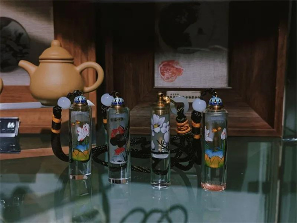依托旅游大省的市場背景,滇派內(nèi)畫的產(chǎn)品也聚焦于旅游商品。在堅(jiān)守傳統(tǒng)工藝的基礎(chǔ)上,根據(jù)消費(fèi)者的需求,在原有的把玩、觀賞價(jià)值上不斷創(chuàng)新,設(shè)計(jì)具有實(shí)用性的作品。掛件、筆筒、茶葉罐、香水瓶等一系列融合傳統(tǒng)技藝,又不乏時(shí)代感的“伴手禮”不斷加入滇派內(nèi)畫家族,利用抖音、微信公眾等新媒體平臺來推廣滇派內(nèi)畫,并不斷參加“高端私人訂制”和各類展會、博覽會,全力推廣滇派內(nèi)畫,廣受各界好評。