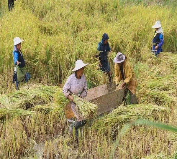 居住在哀牢山一帶的哈尼族,每逢秋收都要舉行一次“喝新谷酒”,“吃新谷”的儀式。有些地區選擇在龍日,因為“龍”在哈尼語里帶有“增多”“填滿”之意,哈尼人希望通過在龍日吃新谷,喝新谷酒的儀式,希望來年的生活豐足美滿。