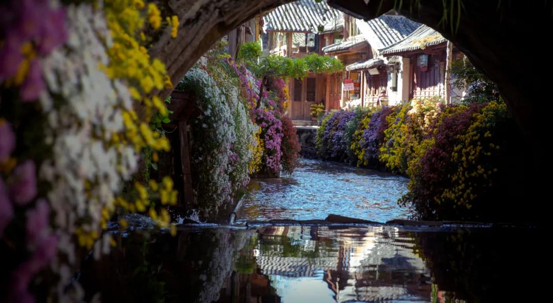 每年秋天,麗江古城都會舉辦金秋菊花展,展出上百個品種,幾萬盆菊花,供來往的游人欣賞。