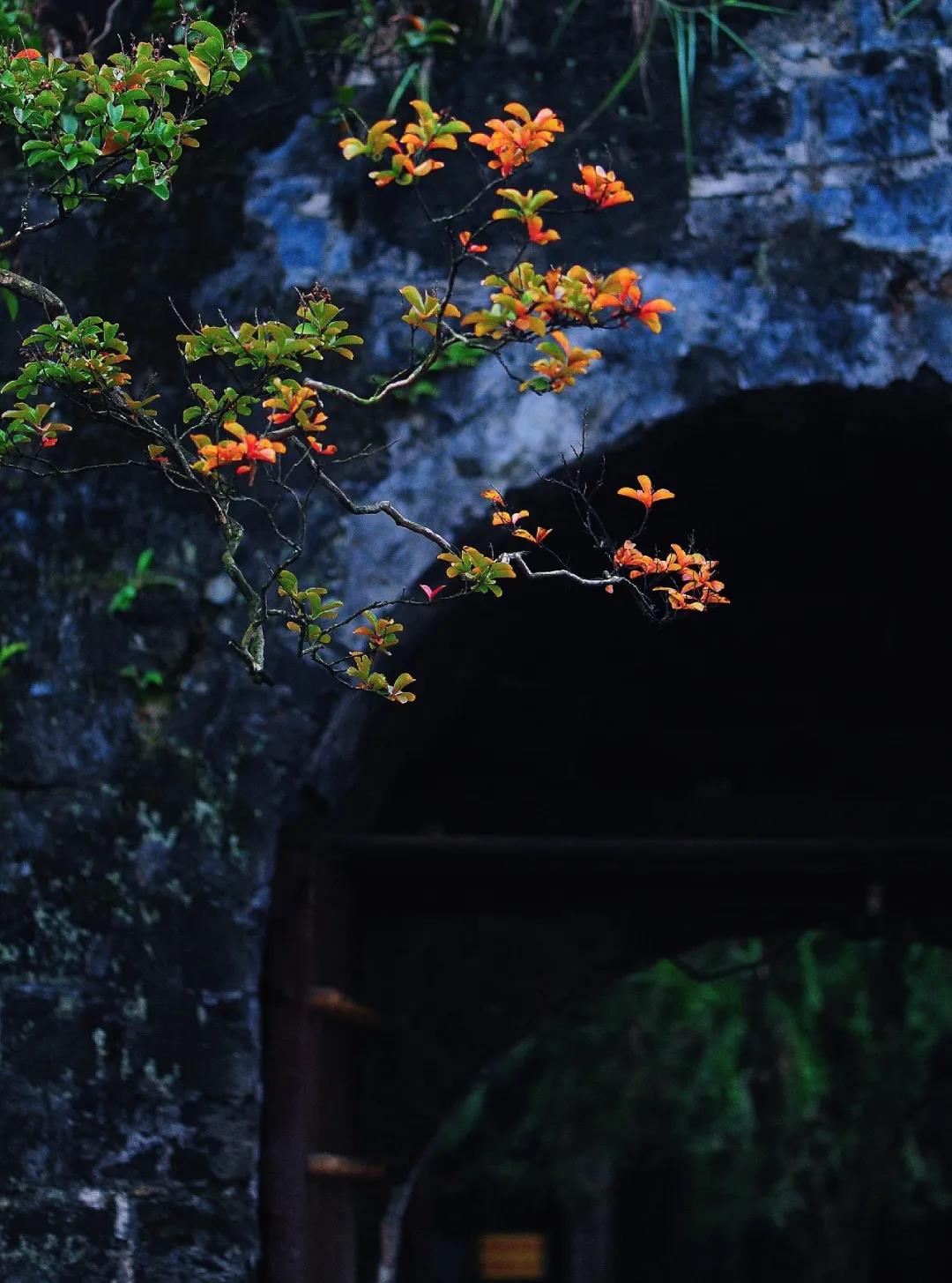 爬山虎那熱烈的紅色,是古鎮里掩蓋不了的秋意。