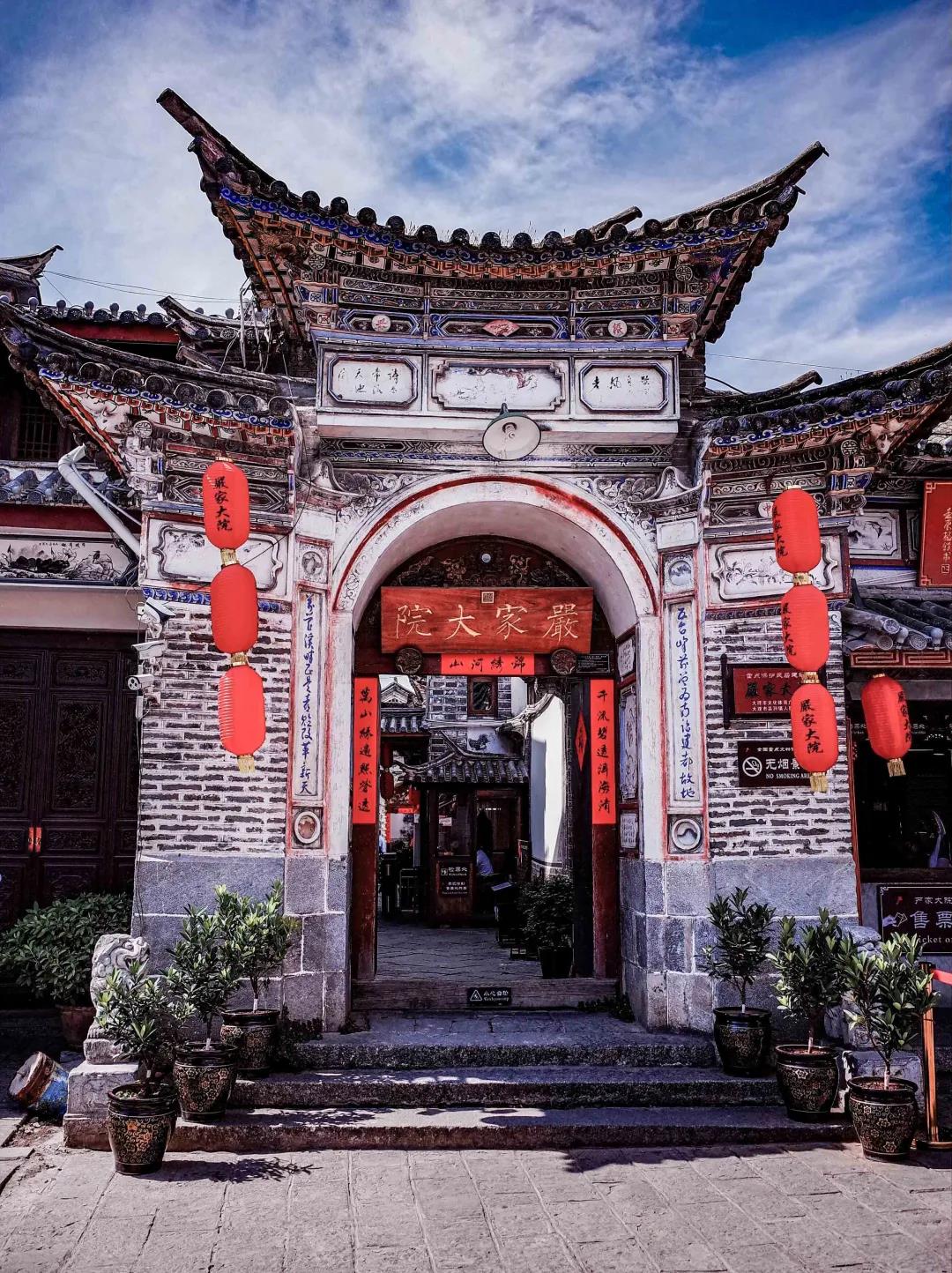 就如老舍先生所描繪的那樣,喜洲的白族建筑,“有像王宮似的深宅大院,都是雕梁畫柱;有許多祠堂,也都金碧輝煌。”