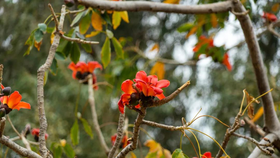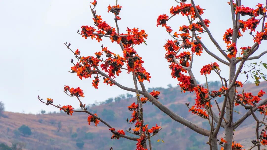 木棉花又稱攀枝花,也叫英雄花。每到云南天氣回暖,木棉花便開紅似火。叢叢點點的木棉花樹矗立于江邊、道路旁、山腰間,仿佛在綠底板的畫紙上涂抹出點點不規(guī)則的大紅韻。