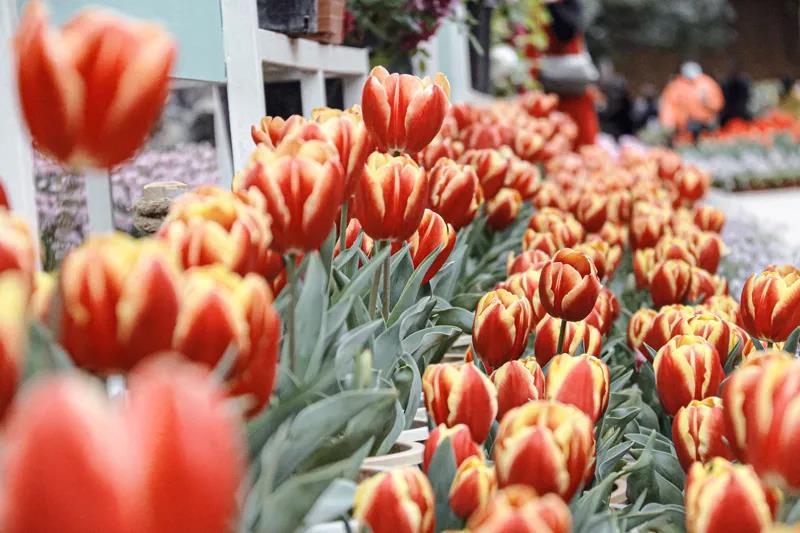 郁金香從未缺席過云南的春天,各州市公園內(nèi),成片的各色郁金香,異彩紛呈,莖稈高低錯落有致,由深至淺,在春日暖陽中亭亭玉立,整個云南洋溢著一派濃濃的春意。