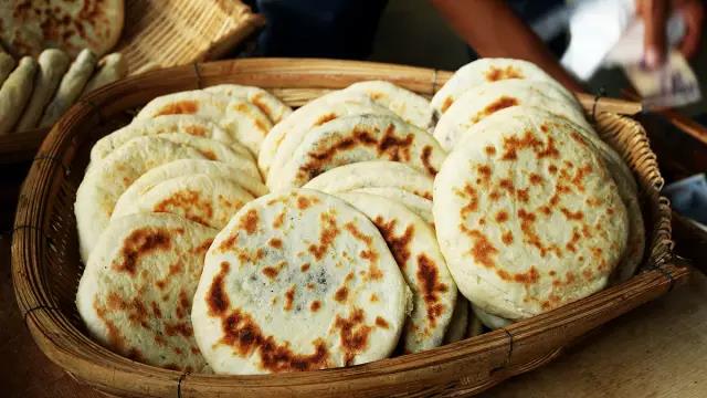 云南官渡的地方特產,由面烘制而成,內含芝麻、花生、核桃等磨細果仁,與白糖混合為餡,松軟香甜。