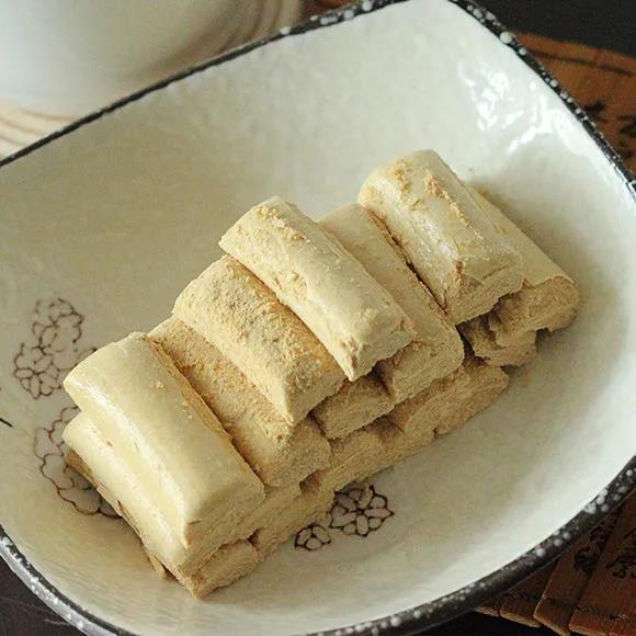 豆末糖是云南通海歷史悠久的傳統甜點,以云南特有的大豆,經過精心挑選、焙烤、粉碎,配以當地生產的飴糖和其他物料,經高溫熬制、糖膏與豆末多次折疊、精心制作而成。