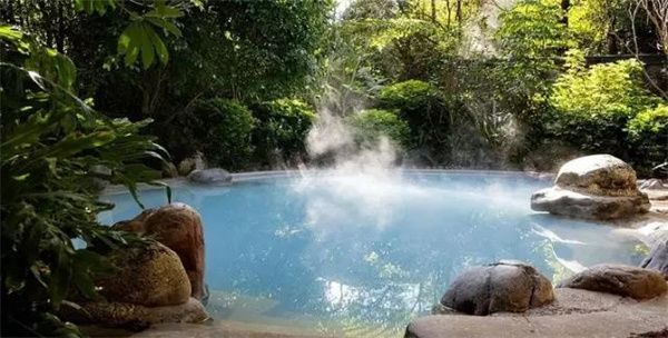 溫泉層迭的樹林里縹緲著白色的水汽,有的池間距離雖近,卻有自然綠植分隔開空間,非常靜謐安逸。