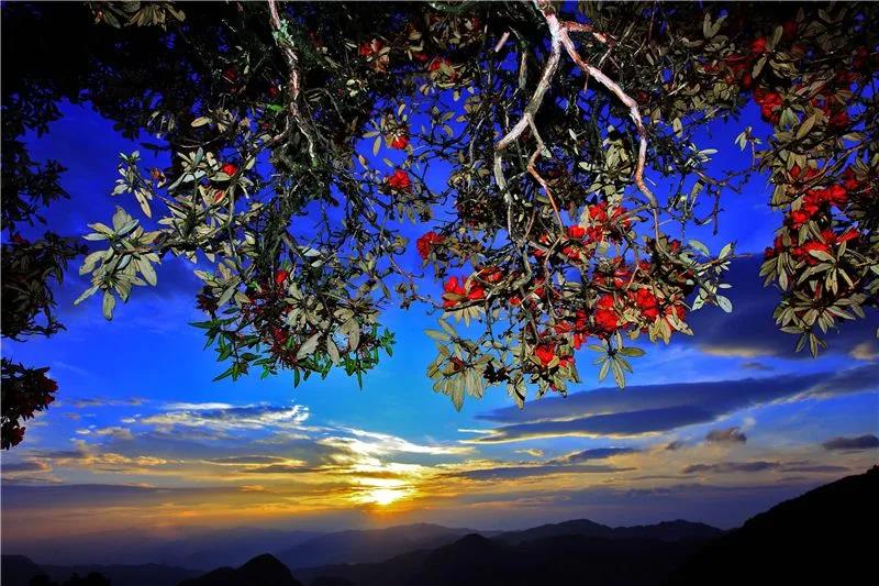 雪嶺火峰是云南滇中第一峰,山勢雄偉,海拔4344米,位于東川區。在晚霞的映照下,遠眺雪山呈現瑰麗的桔紅色,燦爛如火,異常壯美,因此得名。